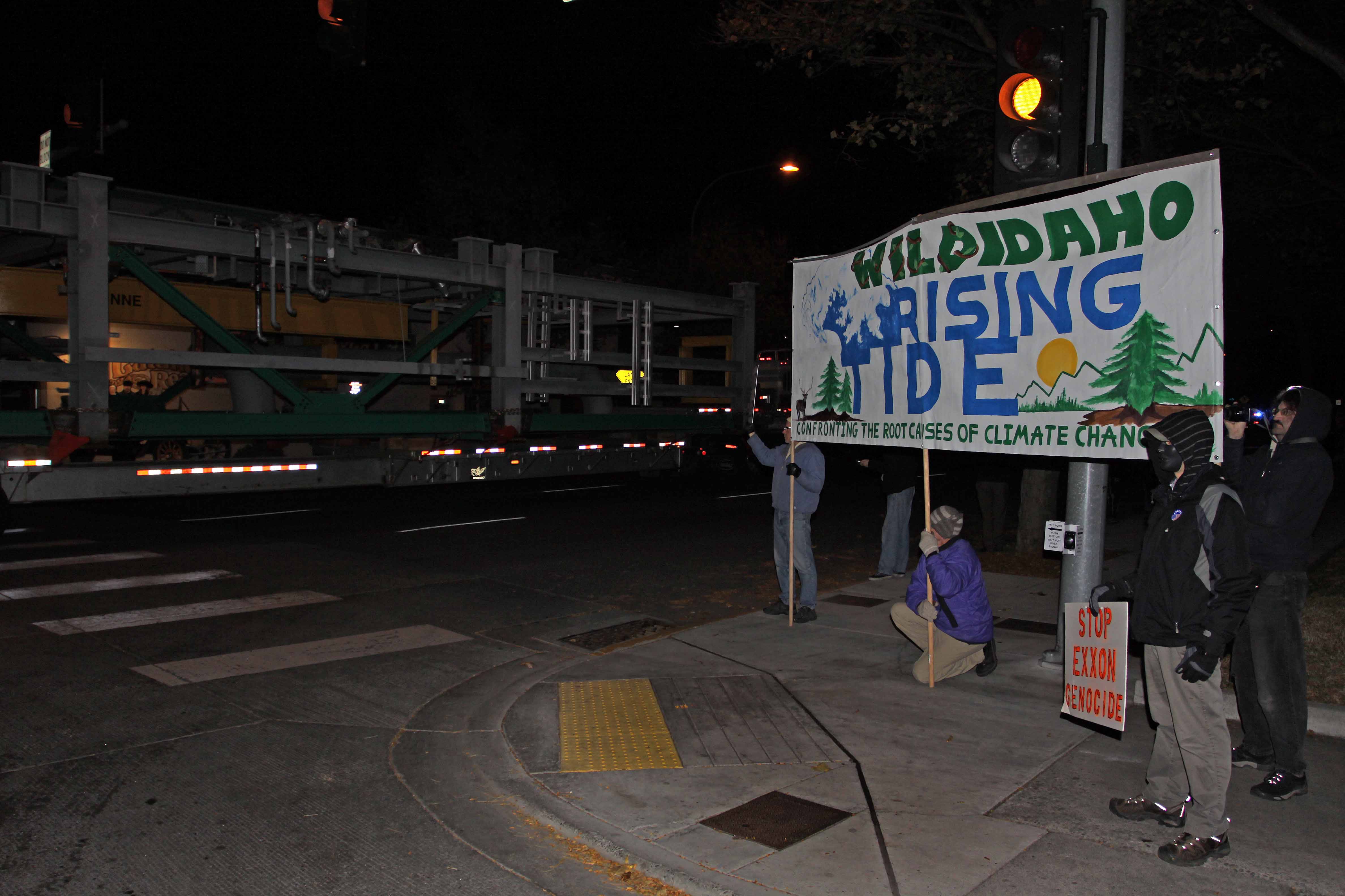 While America sleeps, the mechanisms of planetary demise rumble through our streets toward the dirty depths of our oil addiction hell. As most of the nation remains fixated on the Keystone XL and other tar sands pipelines, the machinery that processes the low-grade Alberta fuel that fills those conduits rolls closer to construction. Some brave and abandoned Northwesterners are physically confronting ExxonMobil/Imperial Oil’s tar sands equipment as it degrades their roads and rights on the way to devastating whole watersheds and cultures. Continue reading