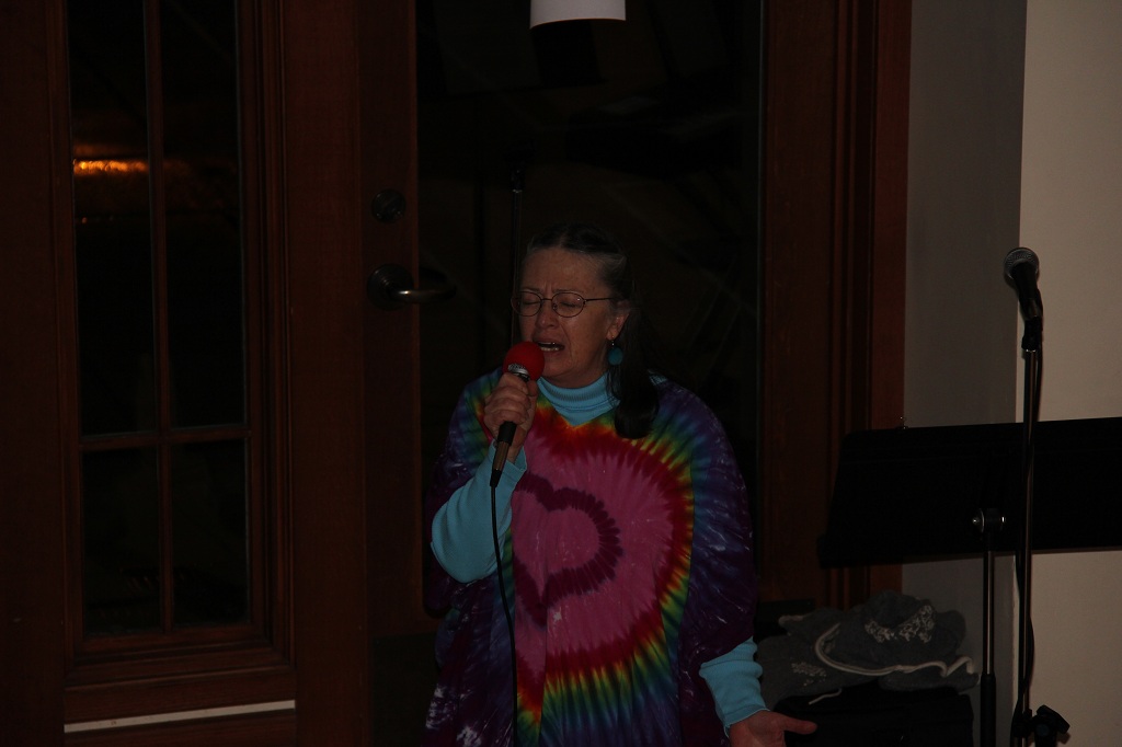 Jeanne McHale opened the musical entertainment for the First Annual Celebration of WIRT, with original, politically charged songs about corporate and government malfeasance and environmental mayhem (Tom Hansen photo).