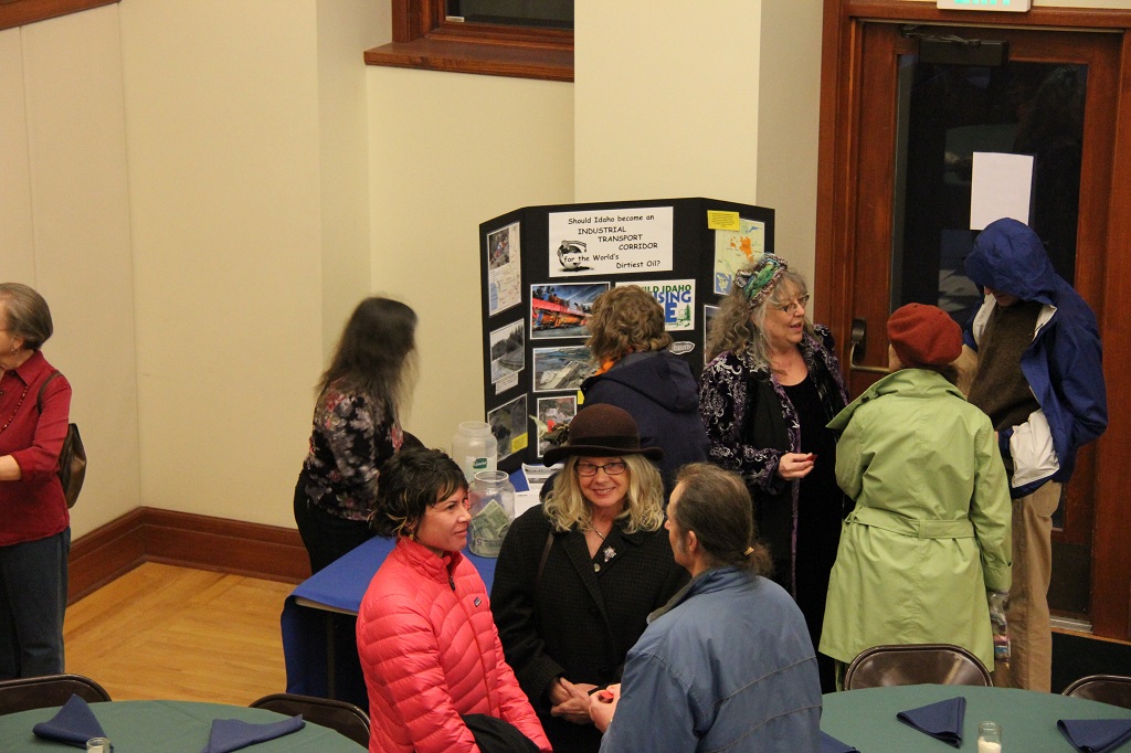 Participants gathered near the Wild Idaho Rising Tide (WIRT) outreach display inside the 1912 Center Great Room entrance on a rainy Saturday evening in Moscow (Tom Hansen photo).
