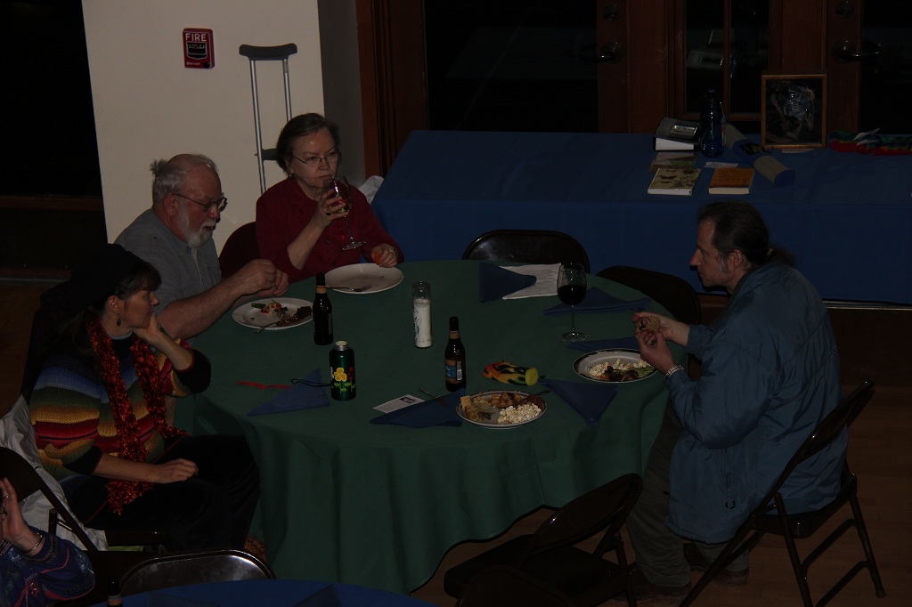 As the 1912 Center Great Room slowly filled with party-goers, activists and supporters enjoyed a potluck dinner provided by participants (Tom Hansen photo).