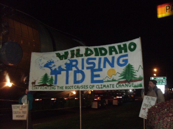 Wild Idaho Rising Tide activists demonstrate resistance to the first Alberta tar sands megaload to successfully cross Idaho and Montana via the Highway 12 wild and scenic river corridor through the largest wildlands complex in the lower 48 states.