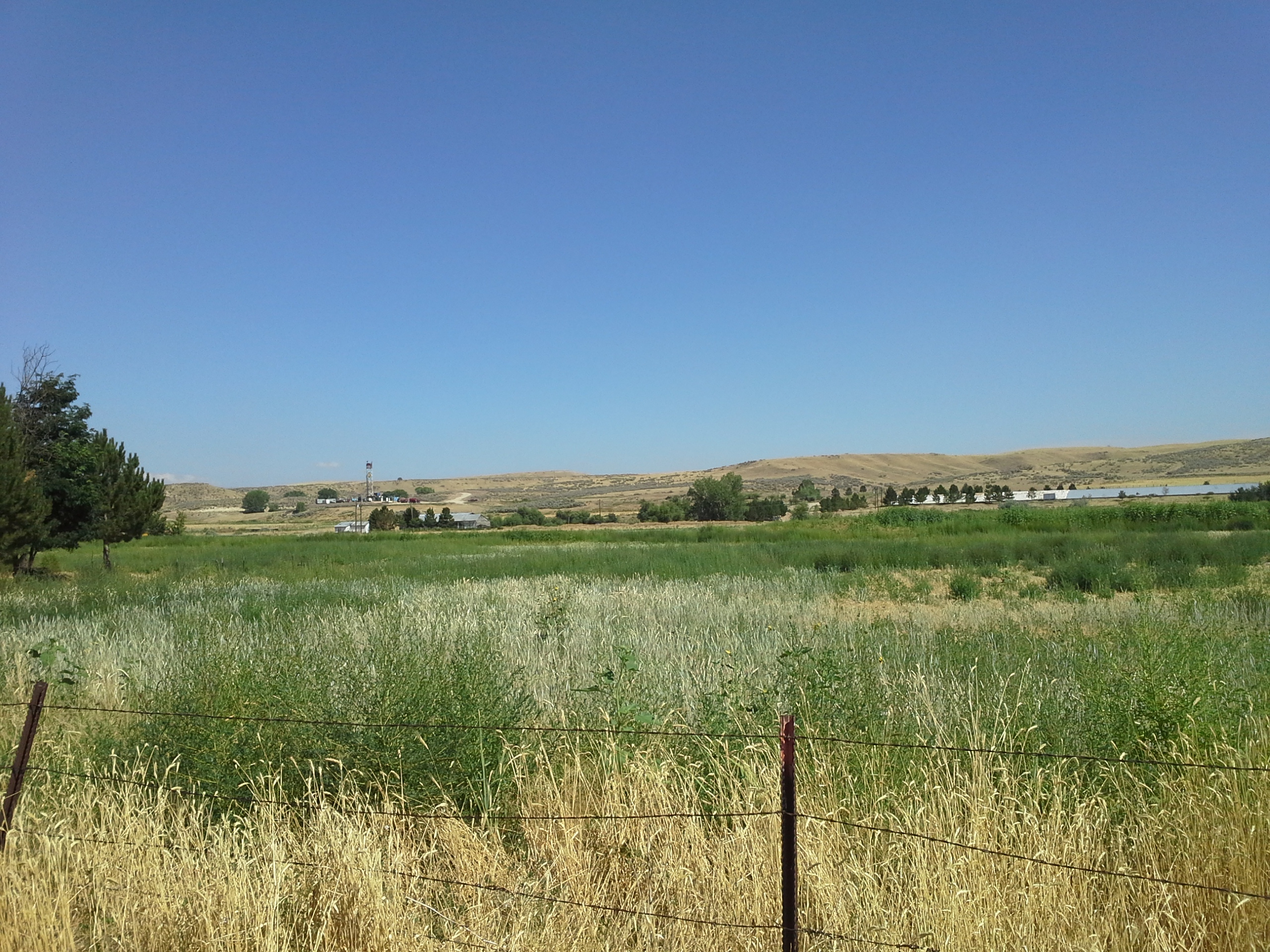 On Thursday and Friday, August 1 and 2, Idaho Residents Against Gas Extraction (IRAGE) and Wild Idaho Rising Tide (WIRT) arranged carpools from north Idaho and Boise to the current Payette County drilling area, to stage the first, overdue, public, on-site, oil and natural gas drilling protest in Idaho history. With continent-wide recognition through Earth First! Newswire coverage, even Utah comrades called WIRT and considered participation. At 3 pm MDT on August 2, friends, family, and neighbors gathered with their fracking/drilling protest signs and banners, cameras and binoculars at the A & W Restaurant/Chevron gas station just north of Interstate 84 Exit 3 in southwestern Idaho. These dozen protesters from across the state and country chanted and waved signs at the nearby high-traffic corner of Highways 95 and 30. They then followed organizers to the Smoke Ranch well site on Highway 52, from where Alta Mesa Services had moved a drilling derrick to the new ML Investments well pad, soon after the IRAGE/WIRT announcement of this demonstration of outrage.