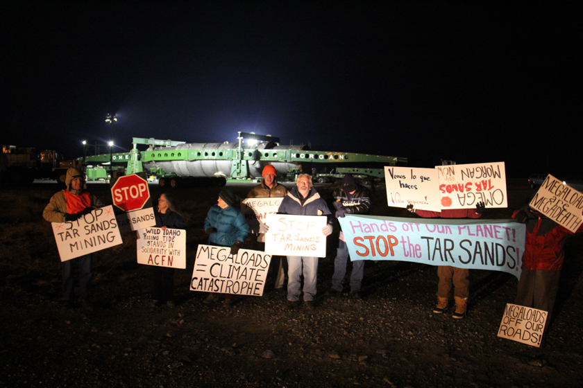About a dozen protesters from across the state braved subfreezing temperatures on Sunday night at the Port of Umatilla, to deliver the message that they do not want megaloads on Oregon roads.