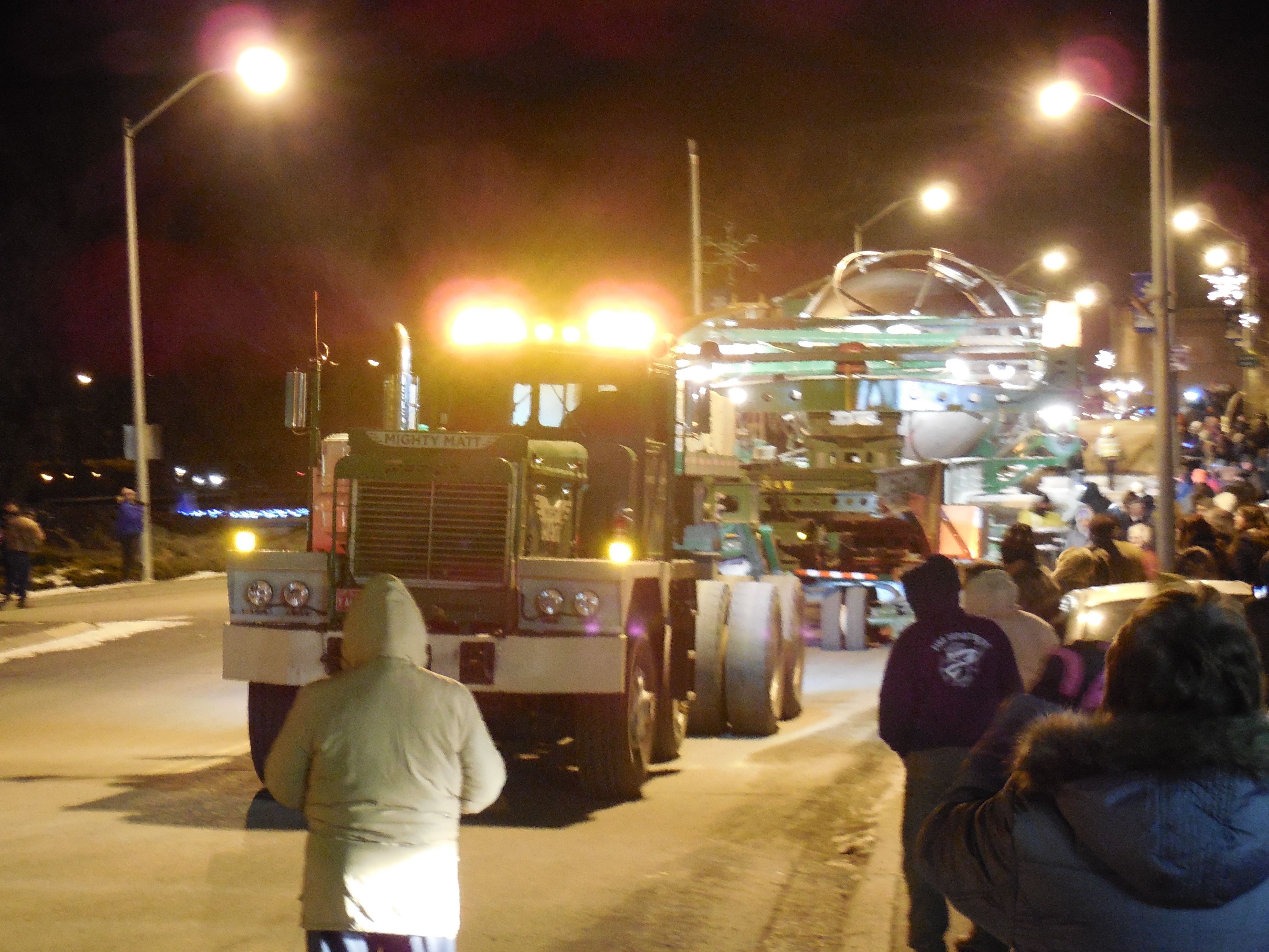 For months, Salmon area residents have been eager to witness and document the 901,000-pound, 376-foot-long behemoth cross the Salmon River on the only bridge in the city, just west of downtown Salmon, and immediately make a sharp, right, 90-degree turn at the base of the bridge, on U.S. Highway 93 north towards Lost Trail Pass, the Montana-Idaho state line, and beyond. By 11 pm on Sunday, January 5, a crowd of more than 100 people gathered to watch the first Omega Morgan tar sands megaload cross over the Salmon River Bridge from Main Street. Salmon regional folks are accustomed to cold weather viewing, even at night, as they watch outdoor ice hockey games and tournaments of youth and adult leagues. The entire spectrum of local gawkers endured the bone-chilling, midnight cold near the river for the occasion – from those who attend Arts Council concerts and library reading club lectures to those who go to car shows, demolition derbies, and stock car races.