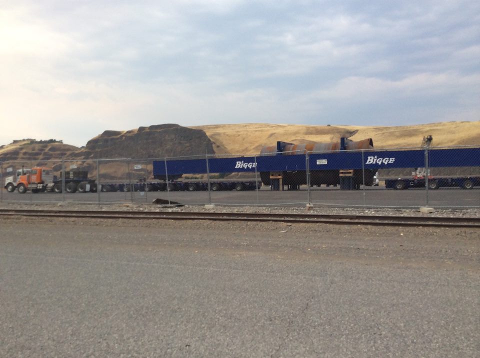 But transportation of two Calumet hydrocracker sections along the Snake River via rail seems unlikely, because the track capacity from the Port of Wilma to Ayers Junction is only 286,000 pounds, perhaps suggesting that the weakest link in the track’s infrastructure would endure unacceptable risks under heavier loads. The GRNW tracks probably could not accommodate loads as heavy as the two pieces of the Calumet hydrocracker, weighing 669,593 and 572,871 pounds respectively. A Schnabel train convoy could add another million pounds [15]. These shipments could still be delayed and/or moving across Washington, Idaho, and Montana to the Great Falls tar sands refinery, so we urge all regional residents to watch for a rusty pressure vessel traveling by train, with its weight distributed over the dozens of axles of a Schnabel rail car.