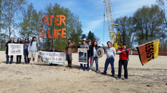 Marching with protest signs visibly close to U.S. Highway 95, the Bonner County residents and three Washington friends waved to the BNSF cops and contracted, Oregon workers, before reaching the lake shore and standing with banners in front of the pile drive crane and the Lake Pend Oreille rail bridge. As new participants arrived, they circled, smudged, prayed, drummed, and sang in ceremony, then reflected on and discussed second rail bridge concerns among themselves and on video. They gradually dispersed and waved goodbye to the railroad crew and police, and gathered for lunch before three visiting Kalispel Nation and Spokane activists departed. Continue reading