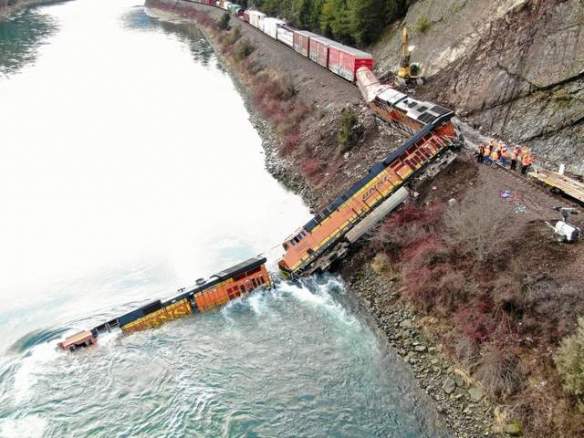 Regulating and documenting derailment impacts, the U.S. Environmental Protection Agency (EPA) has concluded its incident oversight, calling the spill “minor,” although divers recovered only water from the BNSF locomotive fuel tank and crank case in the river last week, which together held between 2,100 and 5,200 gallons. Spokane television news reporters earlier noticed and videoed oily sheens on the river in Bonners Ferry, among 6,200-plus feet of containment boom placed in the waterway. But the EPA, Idaho Department of Environmental Quality, and Boundary County are testing water every 24 hours in six places, and allowing BNSF employees and contractors to conduct river water sampling for pollution, an activity obviously conflicted by railroad avoidance of fines and legal challenges, not to mention its operation and profit motives that risk further catastrophes.